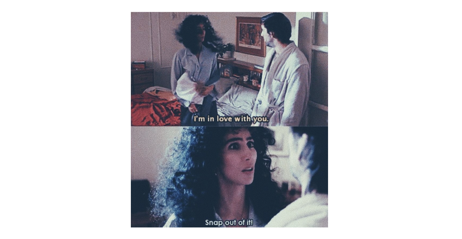 As the two climb out of bed the next morning, surrounded by the mess of their clothing, Loretta tells Donny to “snap out of it” as he starts professing his love for her.