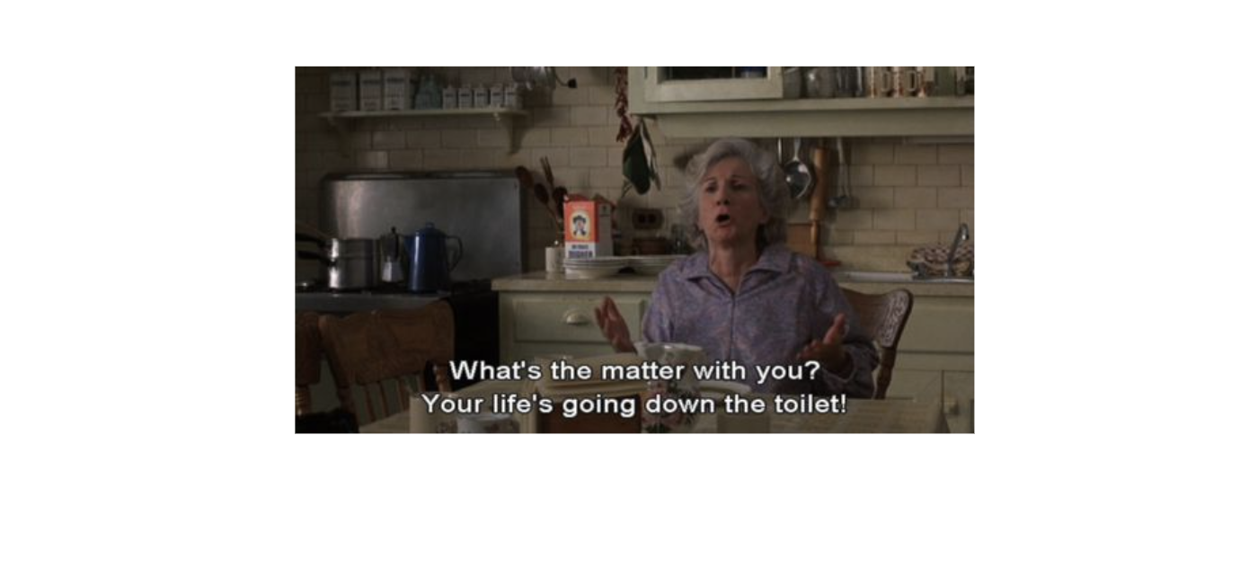 Loretta: Oh, yes, you did! Oh, yes, you did! Y'know, you got them bad eyes, like a gypsy, and I don't know why I didn't see it yesterday. Bad luck! That's what it is. Is that all I'm ever gonna have? I should have taken a rock and killed myself years ago!