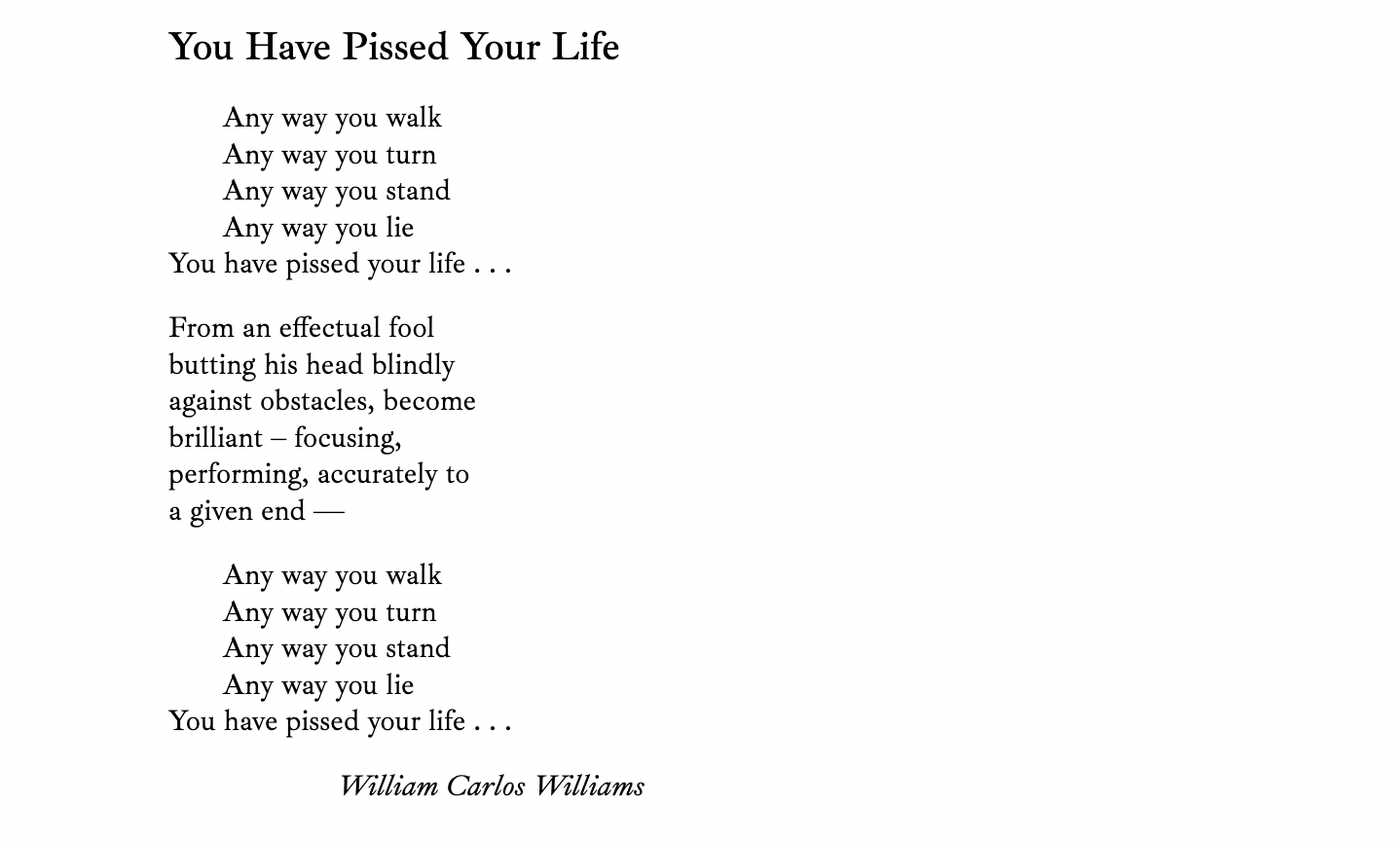 Tonight’s schedule is all singsong and soundsame. As I prepare for it, Frank O’Hara stands near a kitchen wall and look downs, offering his irrepressible smile to the floor, those wonderful questions from “Personism” animating my own. I mean: “. . . how can you really care if anybody gets it, or gets what it means, or if it improves them. Improves them for what? For death? Why hurry them along? Too many poets act like a middle-aged mother trying to get her kids to eat too much cooked meat, and potatoes with drippings (tears). I don’t give a damn whether they eat or not.”