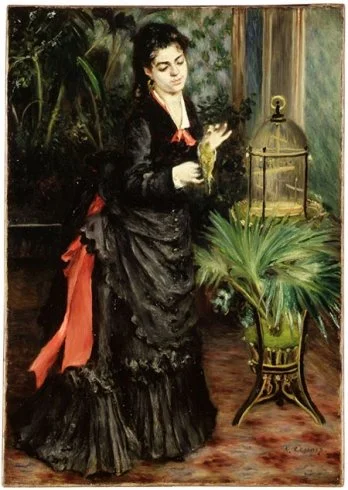 According to the Guggenheim Museum, genre paintings of the 1860s and 1870’s often featured “richly dressed young women” who were assumed to be “lorette, or high-class courtesans.” In these genre paintings, “the parrot and the gilded birdcage are sometimes interpreted as erotic symbols.” The way Renoir leans into this genre might have upset Lise as she sought to varnish her reputation for a marriage into the ruling classes.