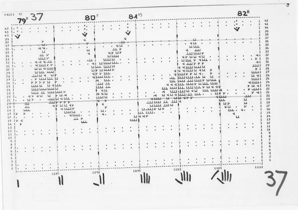 CLEPSYDRA op. 47 for 16 Sound Icons (1982) takes its title from a temporal instrument. In ancient times, the clepsydra refers a contrivance that measuring time by the flow of water, a water-clock — but also may allude to intermittent fountain or ebbing wells. Most of us tend to think of the ancient time-telling piece known as the hourglass, or clepsammia, whereby time is measured by the flow of sand in a glass, but not Radulescu. In the 16-part for this composition, the shape of a horizontal clepsydra emerges and gradually filters a single pitch from a rich sound spectrum. The music then “passes through” this pitch to develop into a new spectrum, becoming richer and more expansive. Each spectral element is activated by different bowing techniques on the Sound Icons, thus playing, once again, into Radulescu’s fascination with the “spectral heterophony” of sound sources.